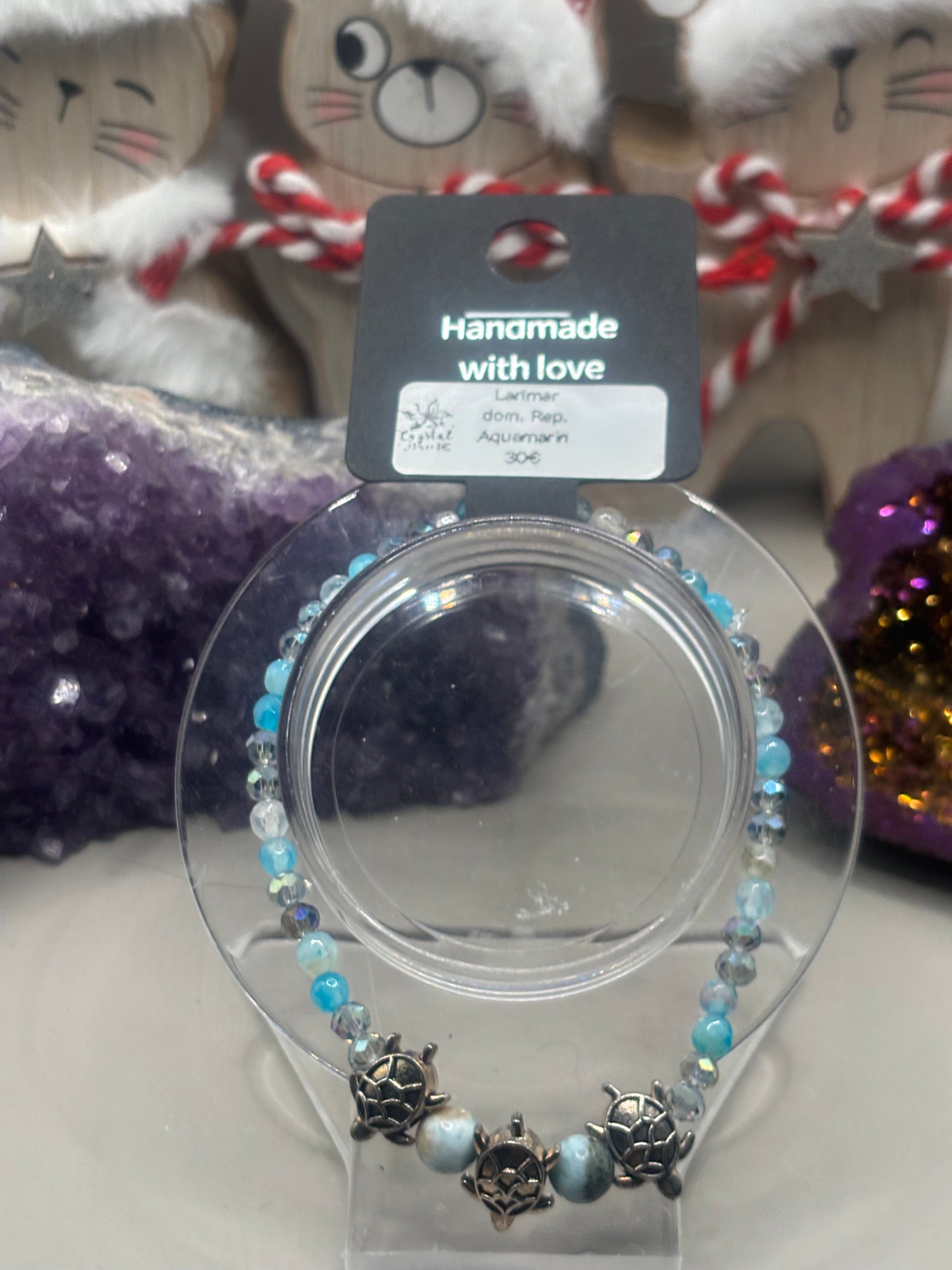 Larimar mit Aquamarin und Schildkröten Charm Armband Handmade